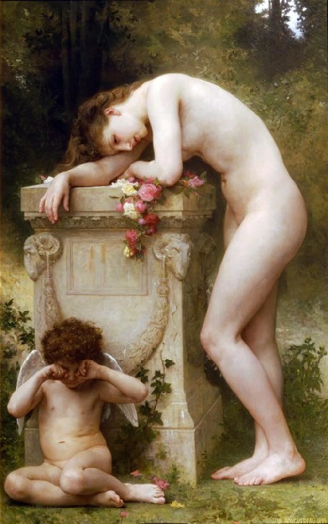 Artist: William Bouguereau Title: Elegy Medium: Fine Art Reproduction Giclee on Canvas Image Size: Approximately 20 inches x 12.5 inches Unframed on Unstretched Canvas Biography: "William Bouguereau is unquestionably one of history's greatest artistic geniuses. Since 1960, his values in the market place have literally exploded, doubling on average every 3.5 years. From works selling for and average $500 to $1500 in 1960, they have accelerated to where in the last three years alone his auction records have been repeatedly broken another 4 times. In 1998 The Heart's Awakening sold for $1,410,000 at Christie's New York. In 1999 Cupid et Psyche, Enfants sold for $1,760,000 also at Christie's to be surpassed the very next day at Sotheby's when Alma Perens owned by Sylvester Stalone sold for $2,650,00. That record only lasted one year until May of 2000, when Charite sold $3,520,000 back at Christie's. Over the last 20 years his paintings all over the world have been taken out of their crates, basements, storage rooms and attics, dusted off, many cleaned and expertly restored, and today over a hundred museums and institutions proudly have his works on permanent exhibit.