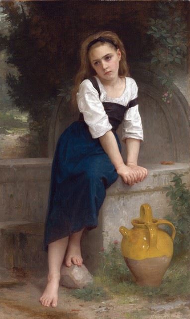 Artist: William Bouguereau - Title: Orphan by the Fountain (1883) - Medium: Fine Art Reproduction Giclee on Canvas - Image Size: Approximately 20 inches x 12 inches - Unframed on Unstretched Canvas - Biography: "William Bouguereau is unquestionably one of history's greatest artistic geniuses. Since 1960, his values in the market place have literally exploded, doubling on average every 3.5 years. From works selling for and average $500 to $1500 in 1960, they have accelerated to where in the last three years alone his auction records have been repeatedly broken another 4 times. In 1998 The Heart's Awakening sold for $1,410,000 at Christie's New York.