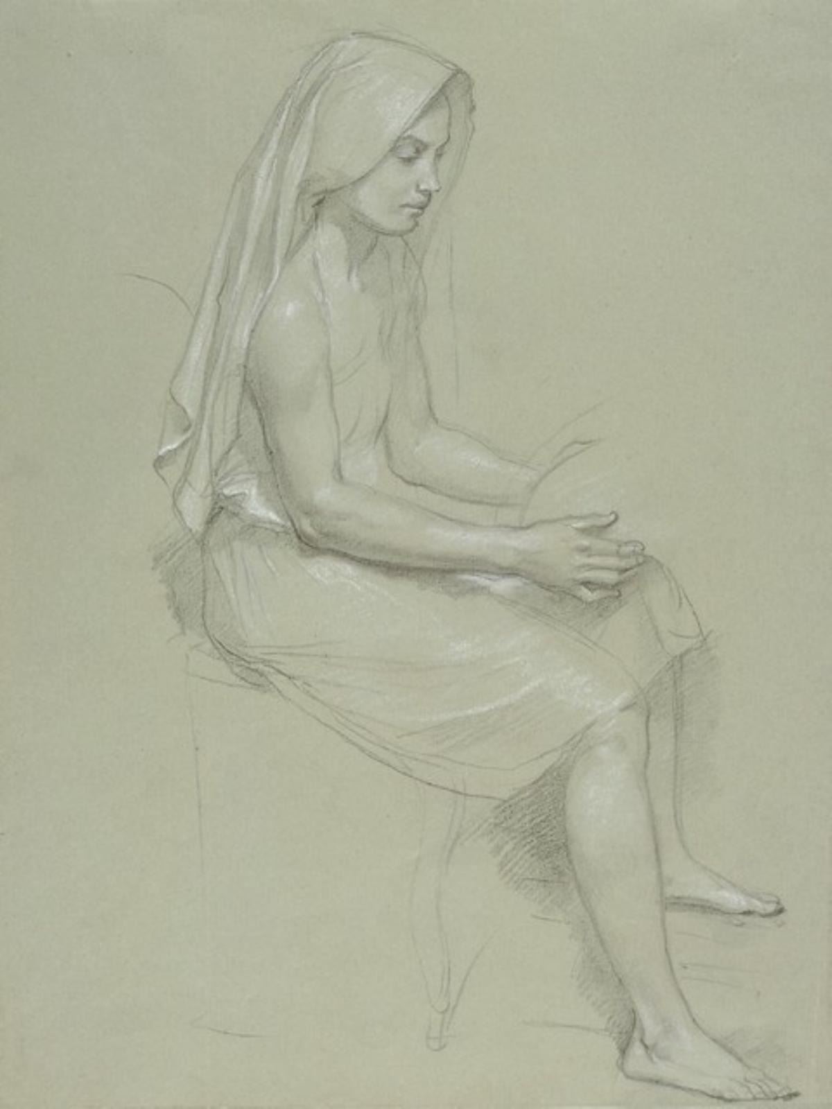 William Bouguereau - Study of Seated Veiled Female Figure 19th Cent.