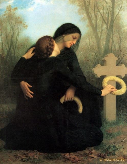 Artist: William Bouguereau Title: The Day of the Dead Medium: Fine Art Reproduction Giclee on Canvas Image Size: Approximately 20 inches x 15.5 inches Unframed on Unstretched Canvas Biography: "William Bouguereau is unquestionably one of history's greatest artistic geniuses. Since 1960, his values in the market place have literally exploded, doubling on average every 3.5 years. From works selling for and average $500 to $1500 in 1960, they have accelerated to where in the last three years alone his auction records have been repeatedly broken another 4 times. In 1998 The Heart's Awakening sold for $1,410,000 at Christie's New York. In 1999 Cupid et Psyche, Enfants sold for $1,760,000 also at Christie's to be surpassed the very next day at Sotheby's when Alma Perens owned by Sylvester Stalone sold for $2,650,00. That record only lasted one year until May of 2000, when Charite sold $3,520,000 back at Christie's. Over the last 20 years his paintings all over the world have been taken out of their crates, basements, storage rooms and attics, dusted off, many cleaned and expertly restored, and today over a hundred museums and institutions proudly have his works on permanent exhibit.