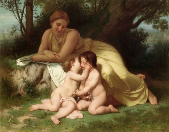 William Bouguereau - Young Woman Contemplating Two Embracing Children