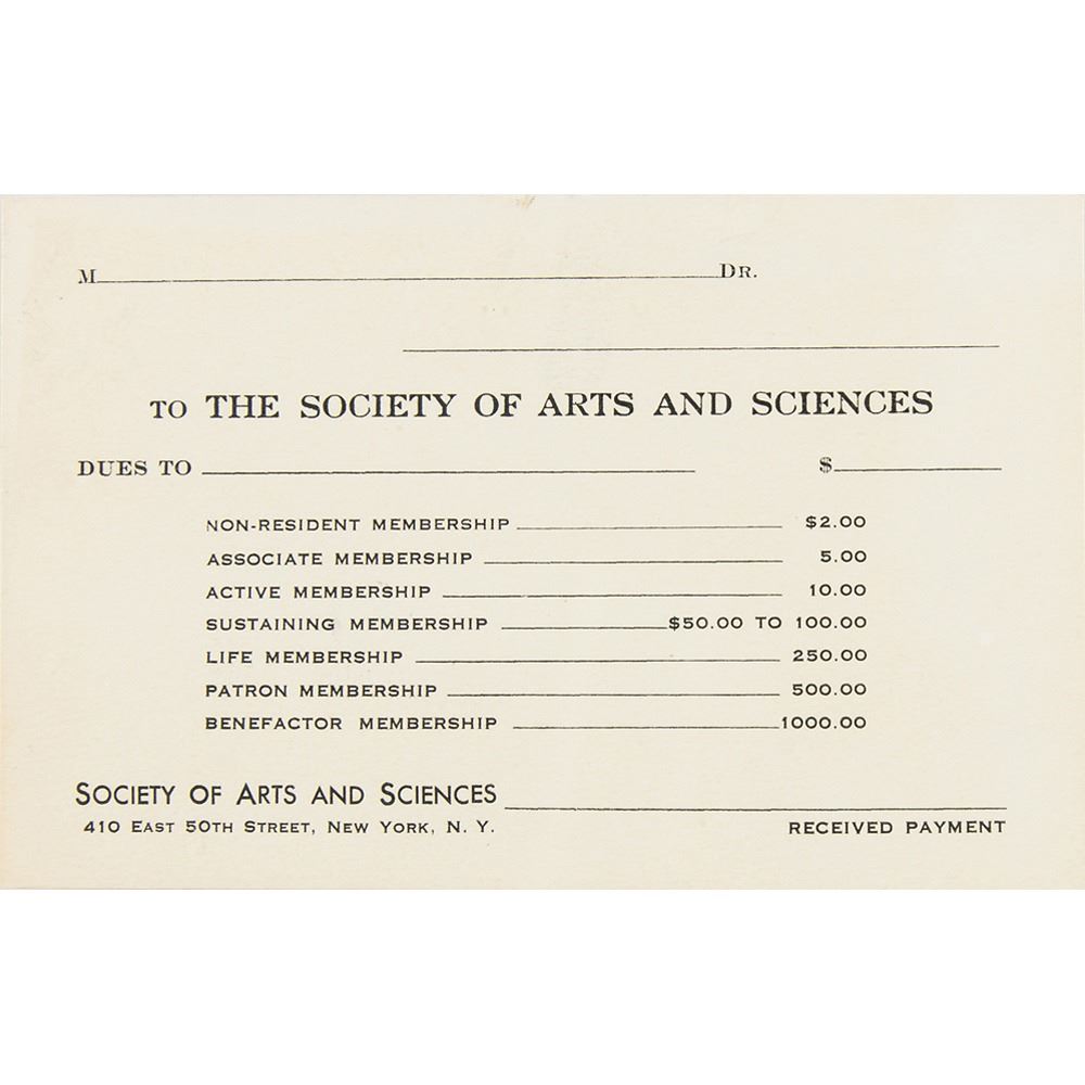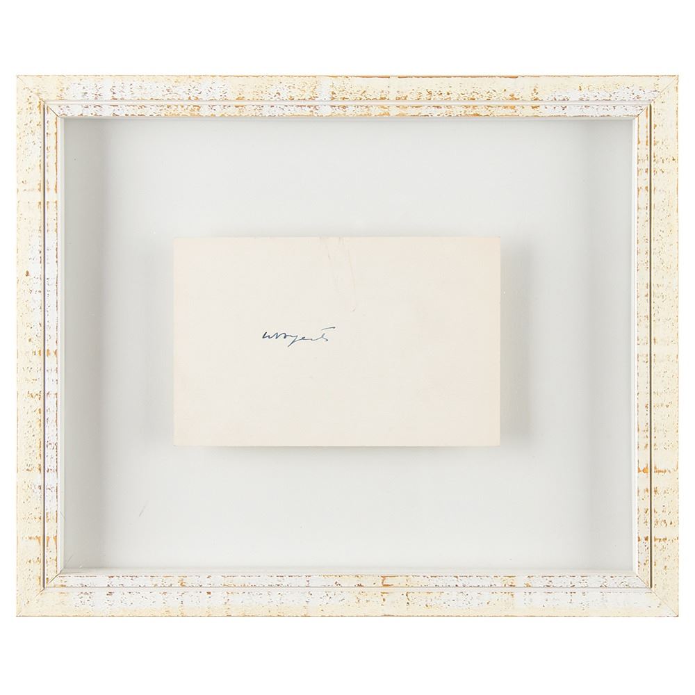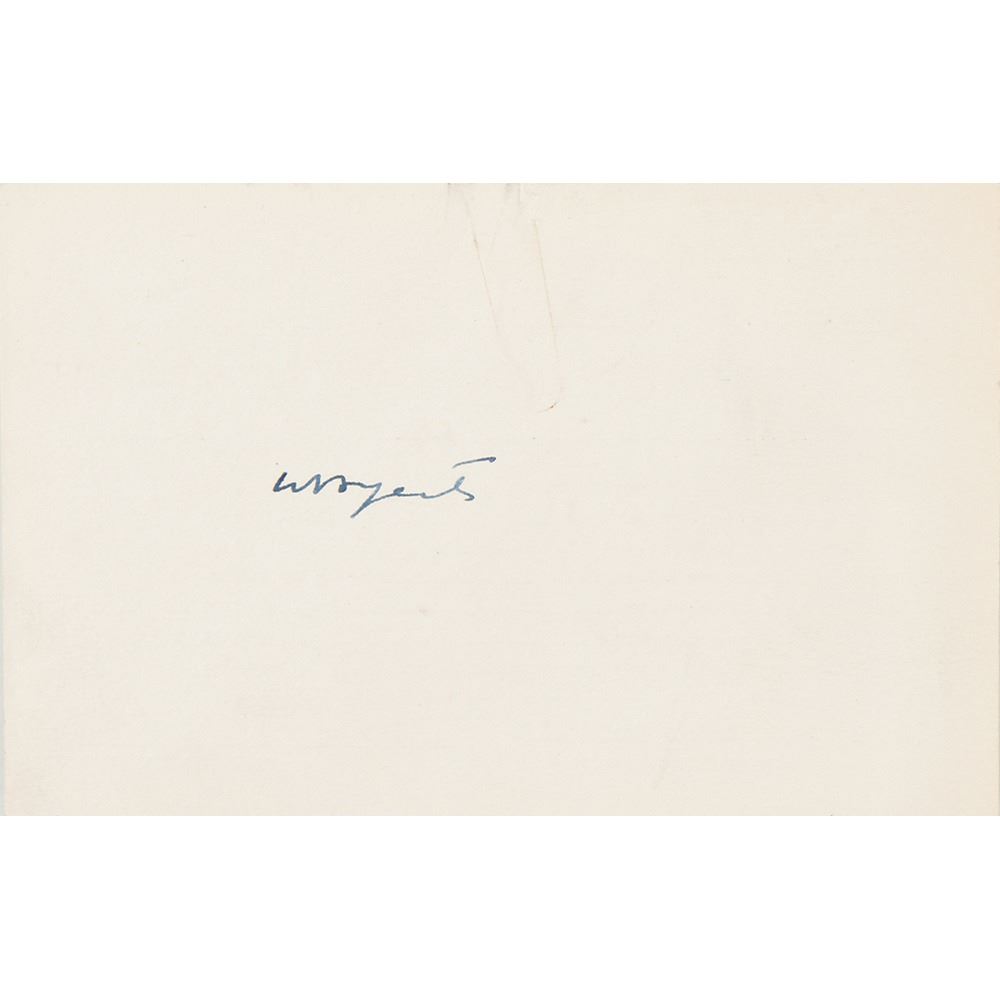 Vintage fountain pen signature, "W. B. Yeats,” on the reverse of an off-white 5.5 x 3.5 membership card for the Society of Arts and Sciences. Framed with glass on both sides to an overall size of 11 x 9. In fine condition, with a light paperclip impression to the top.