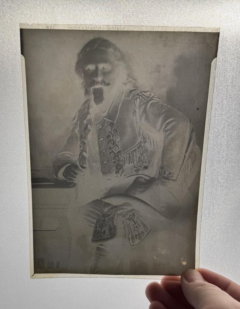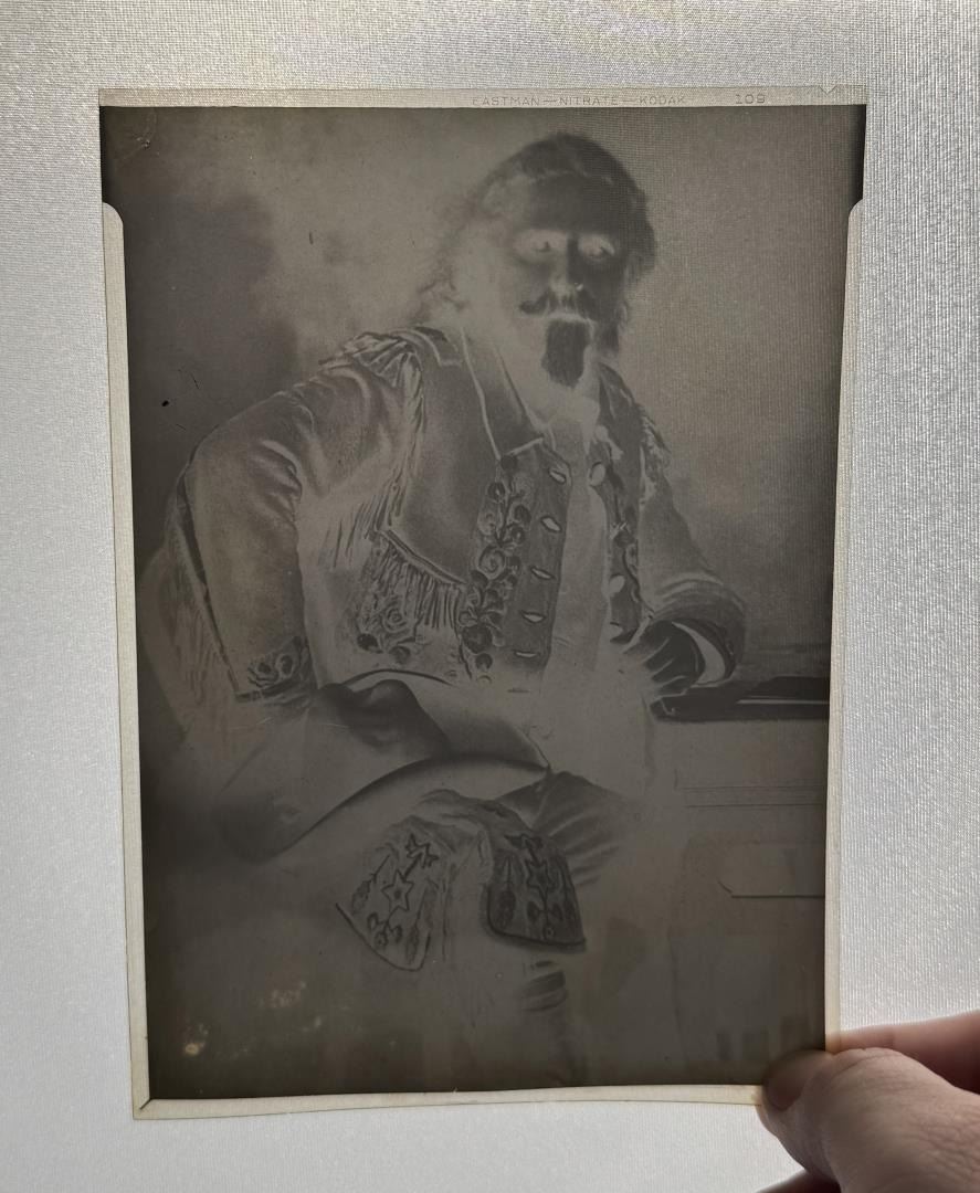 Dressed in Wild West Show regalia. Kodak Eastman negative. 6 5/8" tall by 4 3/4" wide. From the Ralph Merry Collection of Historic Photography.