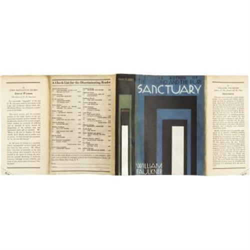 <B>William Faulkner. </B></I><B><I>Sanctuary</B></I></B></I><B>.</B></I> New York: Jonathan Cape & Harrison Smith [1931]. <BR>First edition. Octavo. 380 pages.<BR><BR>Original gray cloth back over maroon paper boards, maroon lettering on spine. Patterned endpapers. Faint wear to board edges and corners. Spine lightly foxed; minor bumping to spine ends. Textblock is fine with faint creases to upper fore-edge corners. Bright dust jacket with a bit of age toning on verso and on flaps; professionally restored at spine by master conservator. Difficult to find in such nice condition - very desirable! Faulkner's sixth novel and his first commercial success.<BR><BR><b>Shipping:</b> Books & Catalogs (<a target="_blank" href="http://www.heritageauctions.com/common/shipping.php">view shipping information</a>)