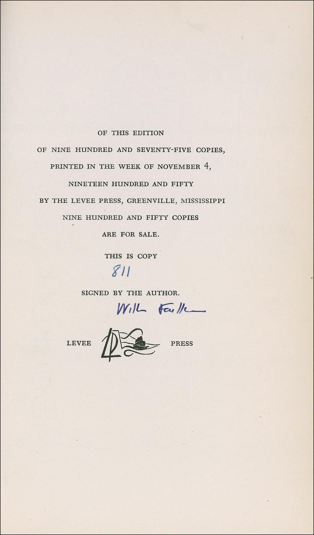 Signed book: Notes on a Horse Thief. Special limited edition of 975 copies (this No. 529). Greenville, Mississippi: Levee Press, 1950. Hardcover, 6 x 9.5, 71 pages. Signed in blue ink on the colophon page. Minor rubbing to boards, otherwise fine condition. Pre-certified PSA/DNA and RRAuction COA.