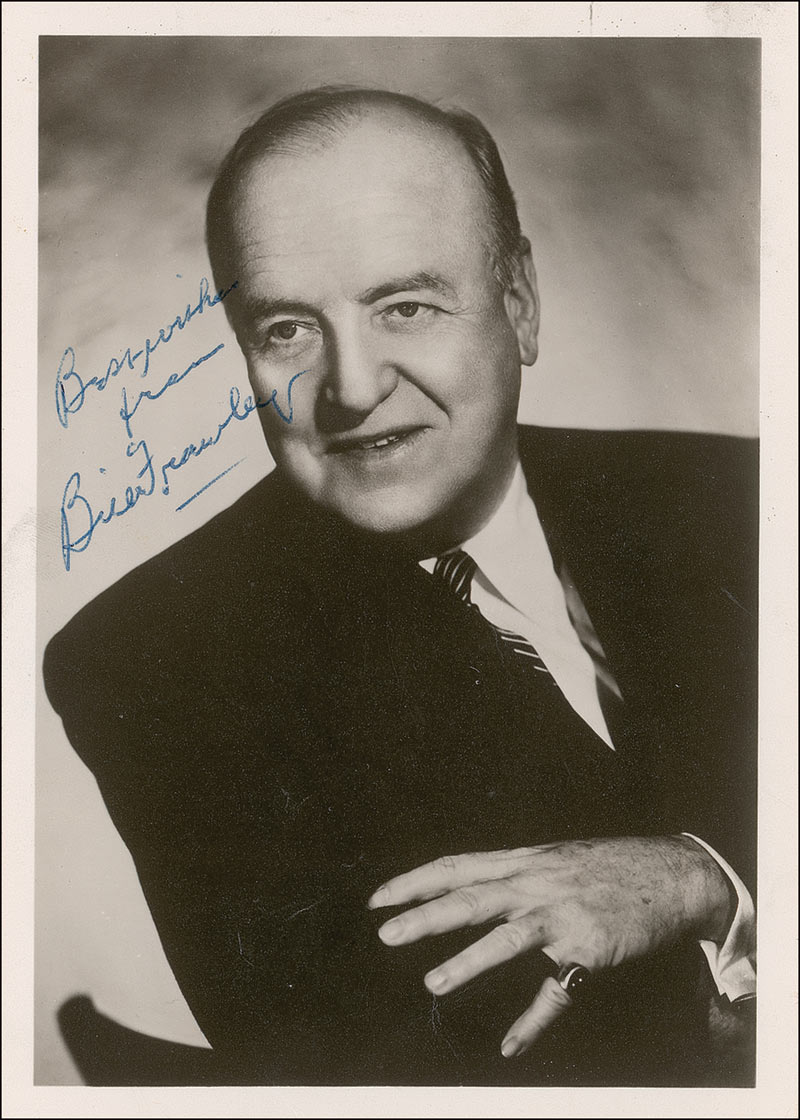 American actor (1887–1966) most well-known for his role as landlord Fred Mertz in I Love Lucy. Vintage matte-finish 5 x 7 photo, signed in blue ballpoint, “Best wishes from Bill Frawley.” In fine condition, with a few scattered light surface marks and dings. An uncommon uninscribed example.