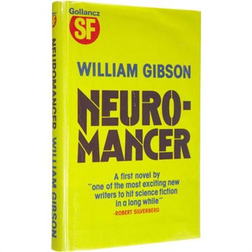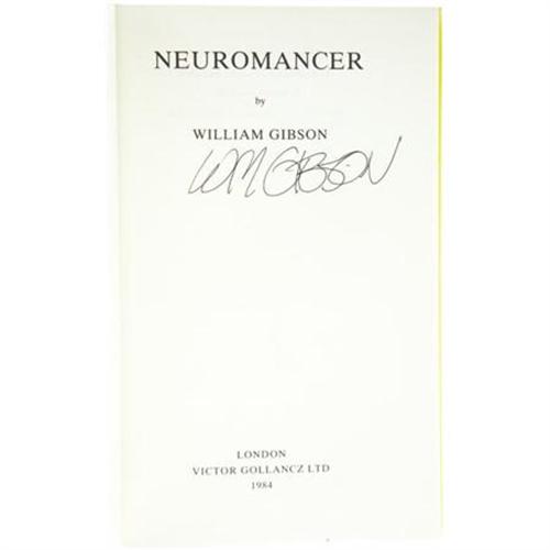 <B>William Gibson: Signed First Edition of <I>Neuromancer</B></I></B></I> (London: Victor Gollancz Limited, 1984), first edition, 251 pages, light blue boards with gilt titles, 8vo (5.25" x 8"), dust jacket. Signed "<I>W M Gibson</B></I>" on the title page. 1984 Nebula award winner, 1985 Hugo award winner, and 1985 Philip K. Dick award winner. The pioneering "cyberpunk" novel. Ranks number 100 on David Pringle's list of the 100 Best Science Fiction novels. The book is in fine condition, with the most minimal thumb-soiling on the textblock edges, in a near fine unclipped dust jacket.<BR><BR><b>Shipping:</b> Books & Catalogs (<a target="_blank" href="http://www.heritageauctions.com/common/shipping.php">view shipping information</a>)