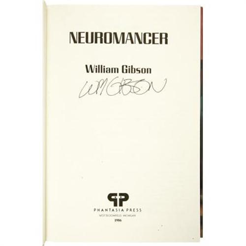 <B>William Gibson: Signed Limited Edition of <I>Neuromancer</B></I></B></I> (West Bloomfield, Michigan: Phantasia Press, 1986), limited edition of 1,575 signed copies, 231 pages, cream cloth with copper lettering on the spine, 8vo (6.25" x 9.25"), dust jacket. Signed "<I>William Gibson</B></I>" on the title page. Winner of the 1984 Nebula, 1985 Hugo Award, and the 1985 Philip K. Dick Award. Fine condition.<BR><BR><b>Shipping:</b> Books & Catalogs (<a target="_blank" href="http://www.heritageauctions.com/common/shipping.php">view shipping information</a>)