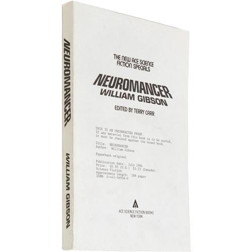 <B>William Gibson Uncorrected Proof:<I> Neuromancer.</B></I></B></I> (New York: Ace Science Fiction Books, 1984), uncorrected proof of the true first edition, 271 pages, wraps, 8vo (5.25" x 8.25"), fine. Hailed as the pioneering "cyberpunk" novel, it won the Hugo, the Nebula, and the Philip K. Dick Award- a never before accomplished feat at that time. It slips in at number 100 on David Pringle's list of 100 best science fiction novels.<BR><BR><b>Shipping:</b> Books & Catalogs (<a target="_blank" href="http://www.heritageauctions.com/common/shipping.php">view shipping information</a>)