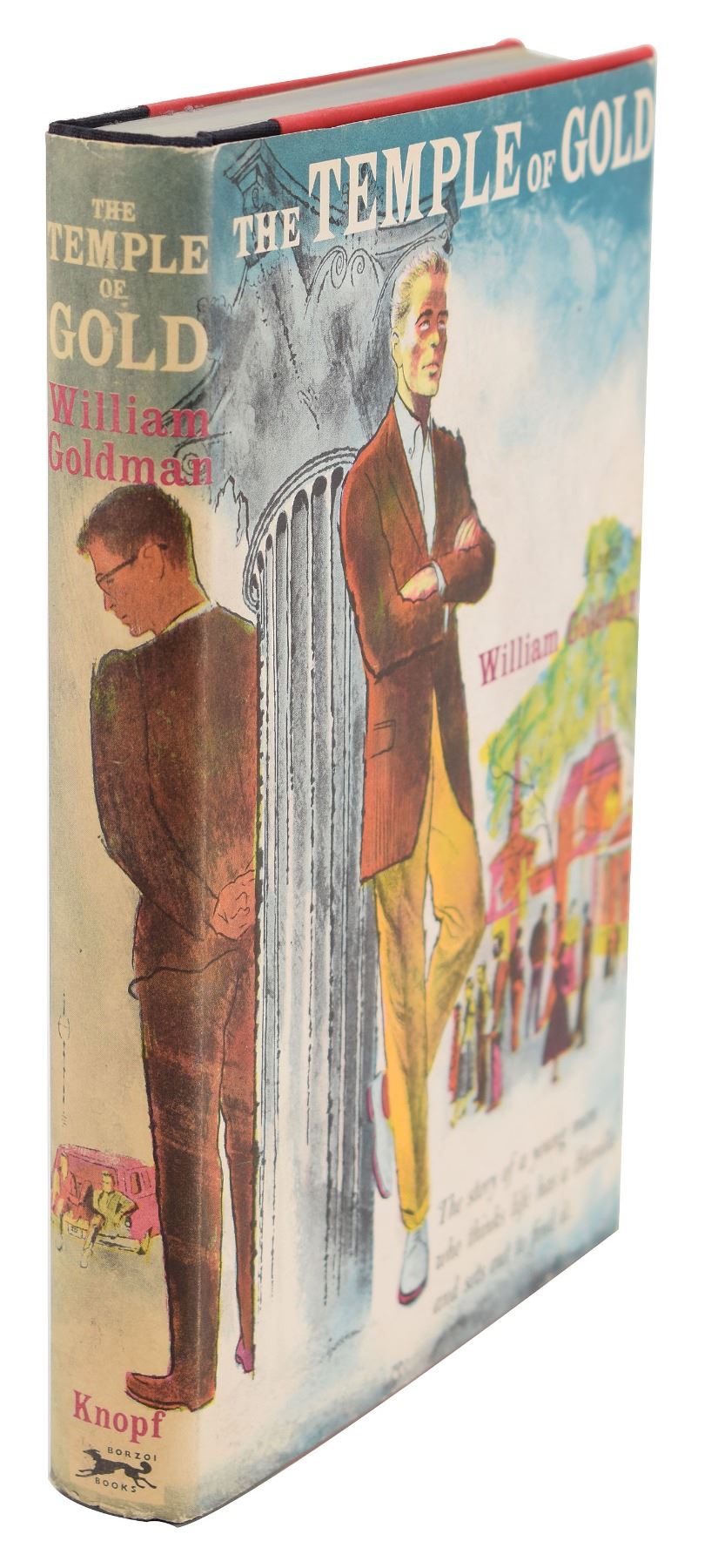 Signed book: The Temple of Gold. First edition. NY: Alfred A. Knopf, 1957. Hardcover with dust jacket, 5.75 x 8.5, 278 pages. Signed and inscribed on the first free end page in black ballpoint, "27 Feb 95, For Joe Collins…The Temple of Gold, God bless, Wm. Goldman." In fine condition.