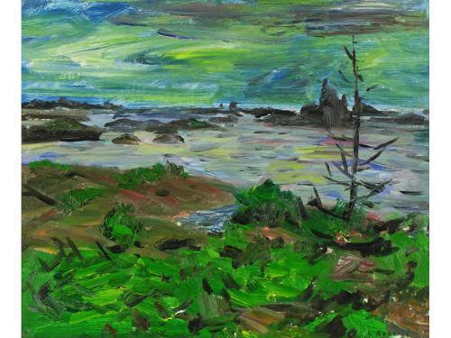 [Canadian CSPWC, OSA, RCA 1904-1974] EVENING GEORGIAN BAY Oil on board 15 x 18 ins. Signed & titled Provenance: Canadian Art Galleries, Calgary Note: Bears artist's label