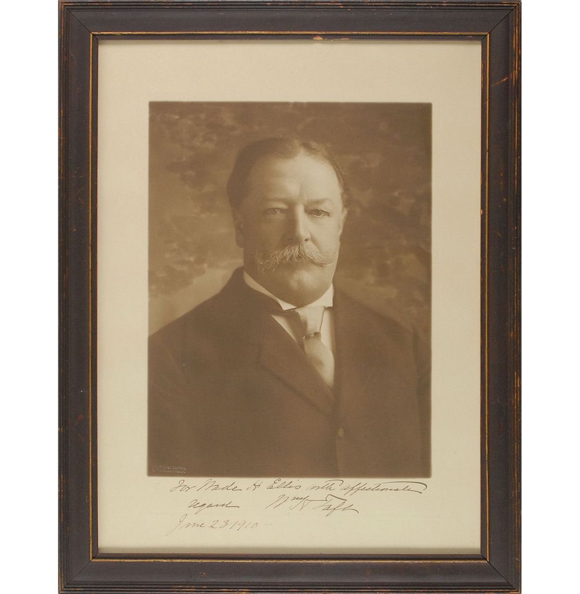 Matte-finish 13.25 x 17.75 Harris and Ewing photo, signed and inscribed in fountain pen, as president, “For Wade H. Ellis, with affectionate regards, Wm. H. Taft, June 23, 1910.” Photo is housed in a period frame with an overall size of 16 x 20.5. In fine condition. Ellis served as Ohio attorney general from 1904–1908, and later as assistant attorney general of the United States, until resigning in February of 1910.