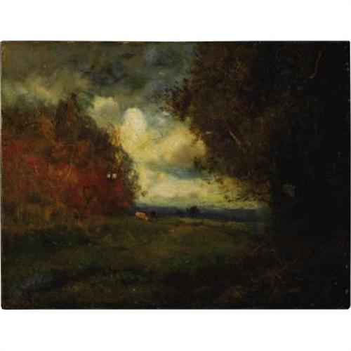 <B>WILLIAM M. HART (American, 1823-1894)</B></I><BR><I>Cows Grazing </B></I><BR>Oil on canvas<BR>13 x 17 inches (33.0 x 43.2 cm)<BR>Signed lower left: <I>Wm HART</B></I><BR> <B>Condition Report:</B> Heavy craquelure throughout, some minor paint loss to canvas edges.<BR><BR><b>Shipping:</b> Framed - without Glass, Small (<a target="_blank" href="http://www.heritageauctions.com/common/shipping.php">view shipping information</a>)