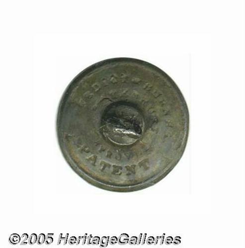 <B>William Henry Harrison Portrait Button</B></I> This is a rare gem! Not pictured in Sullivan, 18 mm in diameter with original shank intact surrounded by patent date and notice, this presents the "Hero of Tippecanoe" in military attire surrounded by laurel wreaths. An elegant, truly handsome political. Lot:256