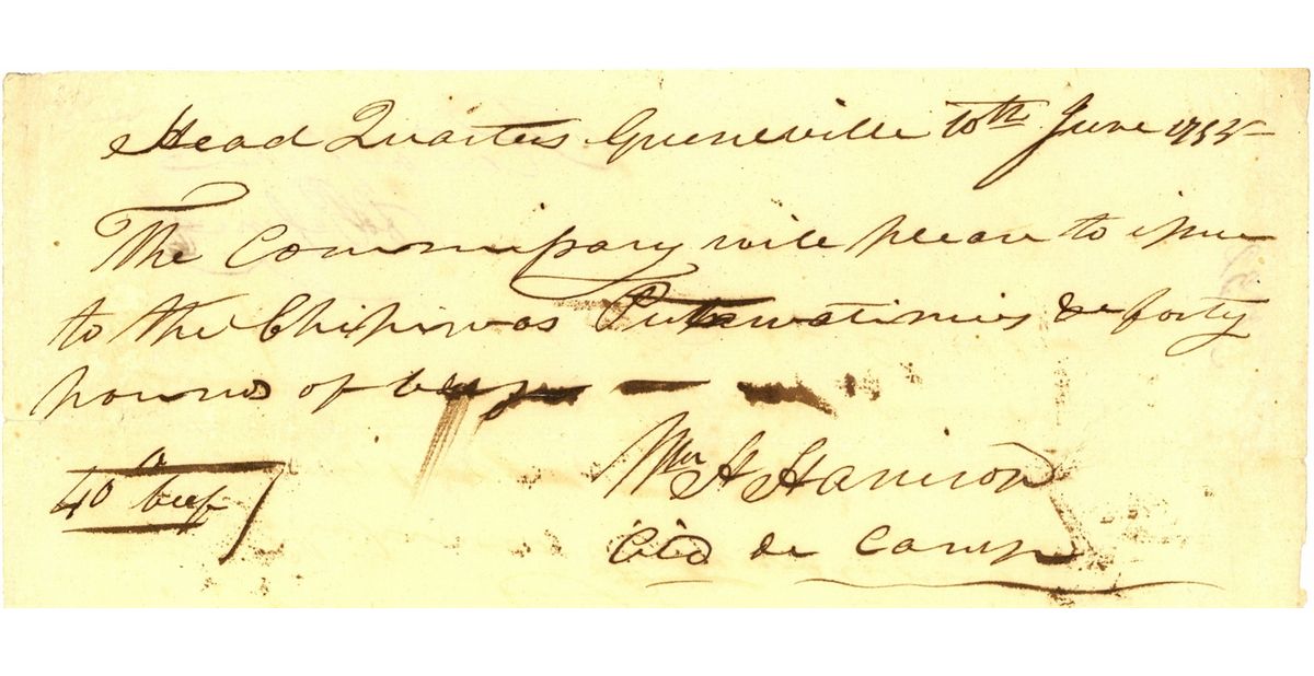 Ninth President of the United States (1841), an American military officer and politician, and the first president to die in office. Harrison died on his 32nd day in office of complications from pneumonia, serving the shortest tenure in United States presidential history. Manuscript DS, signed at the conclusion "Wm H. Harrison A. d. C." one page 6.75 x 3.75, 1794. Military provision, in full, ordering two days of rations for a party of three men belonging to Fort Recovery in Ohio, now at Greeneville Ohio, for their return commencing the 16th and ending the 17th of Feb 1794. Central horizontal and vertical folds and a rough right edge, otherwise fine condition with an excellent, bold signature. Harrison became aide-de-camp to General 'Mad Anthony' Wayne in 1793 and fought in the Indian Wars that began on June 30, 1794. He also took part in an expedition that erected Fort Recovery on the battlefield where St. Clair had been defeated two years earlier. In 1813, he defeated the British and Indians in the Battle of the Thames, in which Tecumseh was killed.