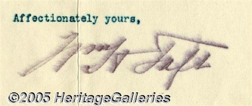 <B>William Howard Taft Typed Letter Signed 1908</B></I> Typed letter signed "Wm H Taft" as Secretary of War, 5.5" x 9", on War Department letterhead, Washington, May 1, 1908, to Congressman J. Warren Keefer, noting his receipt of a recommendation for "...Captain Michie for an appointment in the Military Secretary's Office. I beg to say in reply that the President has already signed the commission of Captain Alvord, and should a second vacancy occur, as may be likely, before the first of July, after which all promotion is closed by law, it will doubtless be filled by the appointment of Captain Ladd. I am sorry no to be able to grant your request...." Usual folds, two file holes at top, otherwise bright and clean, and in excellent condition. <I>Accompanied by COA from PSA/DNA.</B></I>