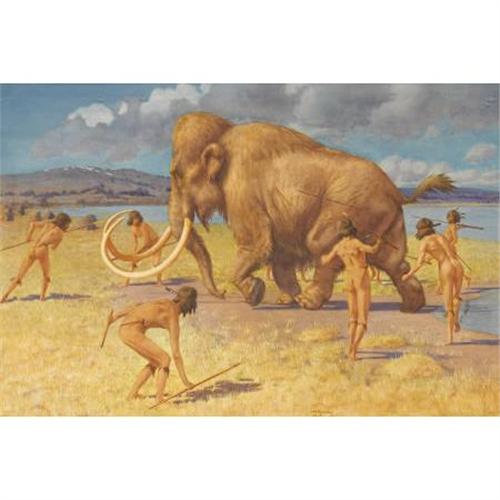 <B>WILLIAM HUTTON RIDDELL (1880-1947)</B></I><BR><I>The Woolly Mammoth</B></I><BR>Watercolor on paper<BR>16-1/4 x 24-1/4 inches (41.3 x 61.6 cm)<BR>Signed lower center: <I>W H RIDDELL</B></I><BR> <B>Condition Report:</B> Good condition. Matted and framed, not examined out of frame.<BR><BR><b>Shipping:</b> Framed - with Glass, Medium (<a target="_blank" href="http://www.heritageauctions.com/common/shipping.php">view shipping information</a>)