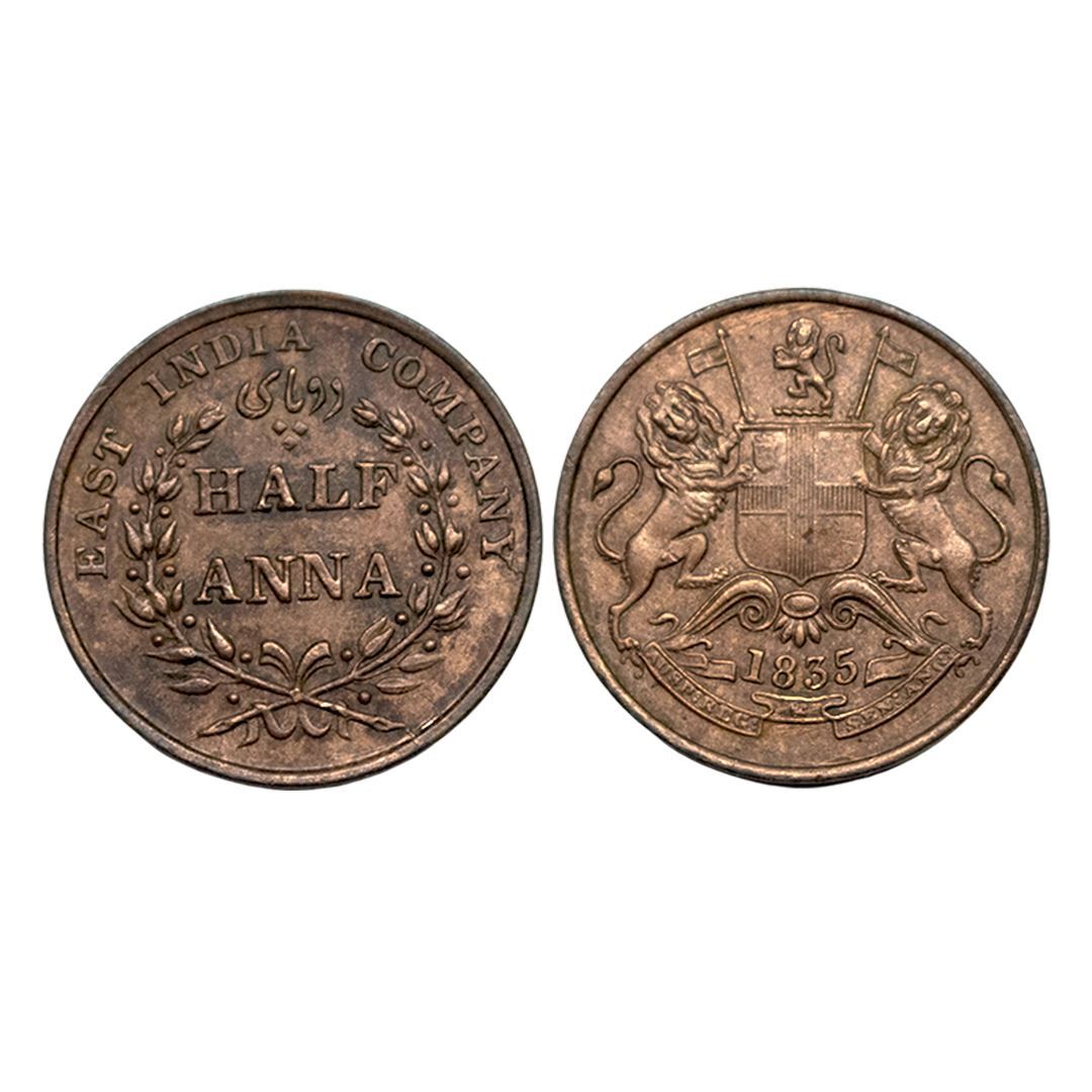 William IIII, Copper Half Anna, 1835, Madras Mint, About Uncirculated, Scarce.