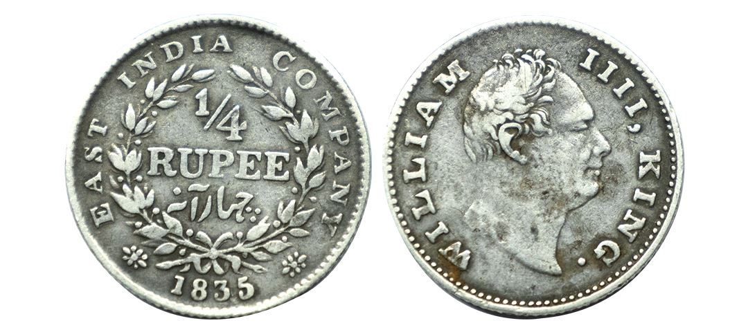 William IIII, Silver 1/4 Rupee, 1835, F on Neck,