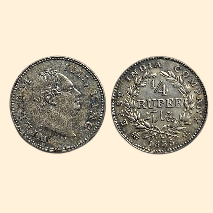 William IIII, Silver ¼ Rupee, 1835, Extra Fine, Rare