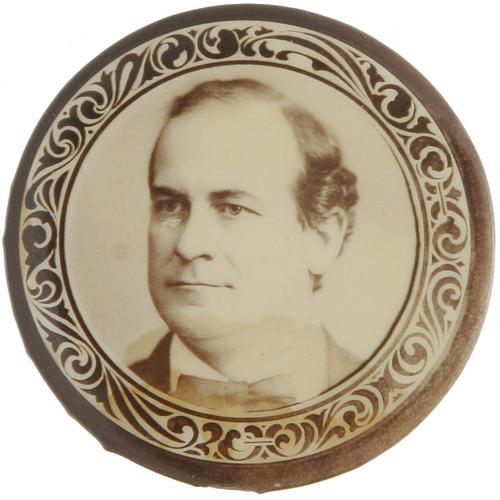 <B>William Jennings Bryan Celluloid Campaign Button,</B></I> 1 1/4", with a central photo of Bryan surrounded by a brown ornamental border. Excellent condition.<BR><BR><b>Shipping:</b> Miscellaneous Collectibles, Smal (<a target="_blank" href="http://www.heritageauctions.com/common/shipping.php">view shipping information</a>)