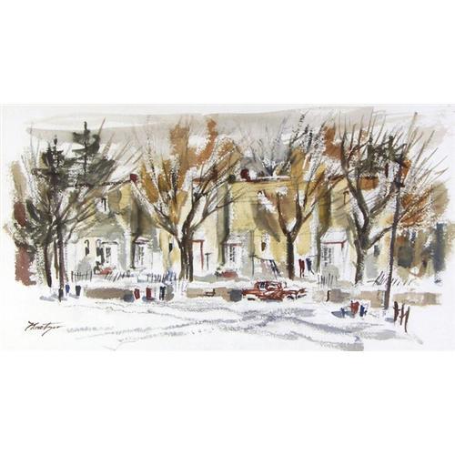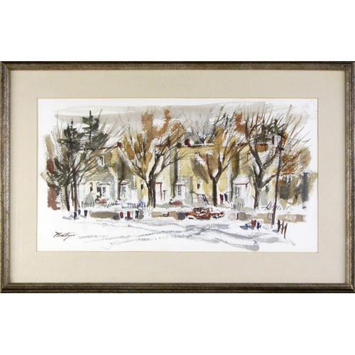 William Kratzer (1924-1997) (Colorado) Watercolor, "The Brownstones", sight size 15 1/4" x 28", signed lower left, Provenance: George Nix Gallery of Colorado Springs stickers attached