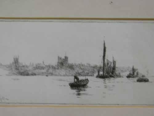 William Lionel Wyllie (1851 - 1931) - barges at Rochester - print, signed in pencil, 7.5cms x 15cms £40-60