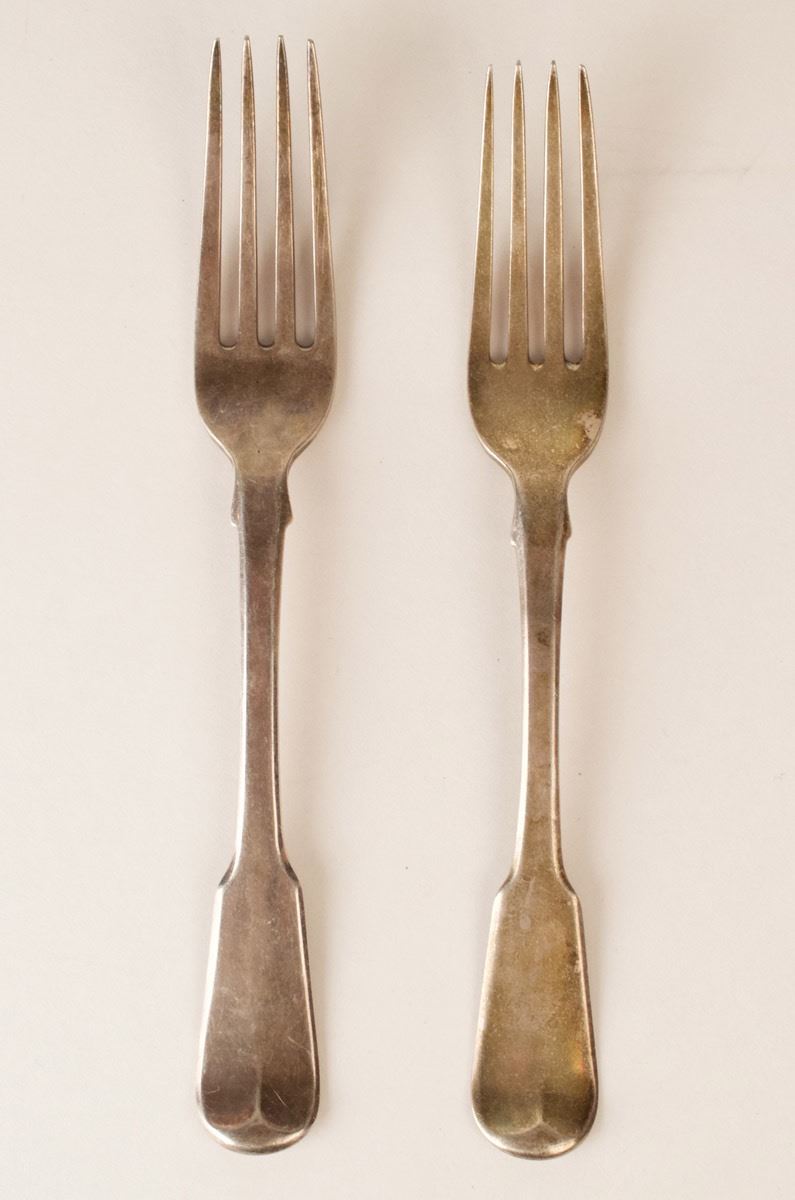 Ensemble de fourchette (x2) en argent sterling, poinçon(s) et sceau du fabricant au dos