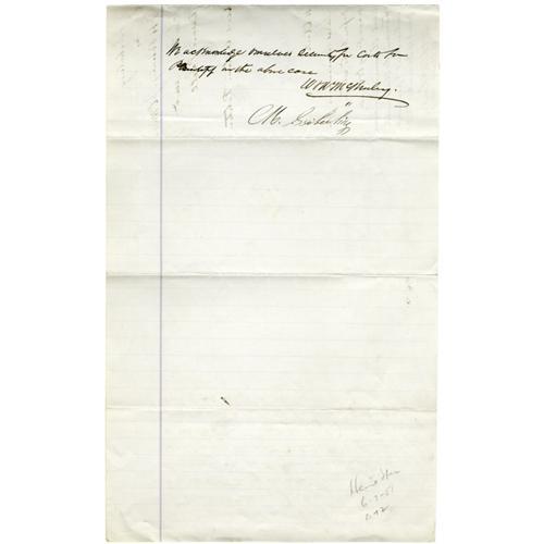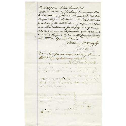 <B>William McKinley Autograph Document Signed (twice), as the attorney for the plaintiff,</B></I> 3 pages, 7.75" x 12.5", Louisville, Ohio, September 3, 1872. Being a legal agreement, regarding services and payment. In Fine condition; docketed on verso. From the Henry E. Luhrs Collection. Accompanied by LOA from PSA/DNA.