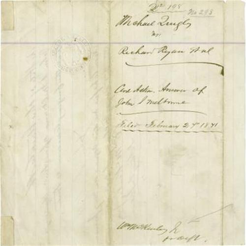<B>William McKinley Autograph Document Signed</B></I> “<I>Wm McKinley Jr</B></I>”. One page, 7.75” x 7.5”, Stark County Canton , Ohio, February 27, 1871, in ink. Before William McKinley (1843-1901) realized his greatest political aspirations he served as prosecuting attorney for Stark County, Ohio from 1869-71. This document dates from that period of McKinley's career. It is a simple legal document, written in McKinley's hand, which probably accompanied a sworn deposition. The document is notarized below McKinley's signature. The document bears the usual endorsements on the reverse. There is some light soiling, a few chips at the margin folds, the usual fold creases, else it is in very good condition. <I>From the collection of Henry E. Luhrs.</B></I><BR><BR><b>Shipping:</b> Flat Material, Small (<a target="_blank" href="http://www.heritageauctions.com/common/shipping.php">view shipping information</a>)
