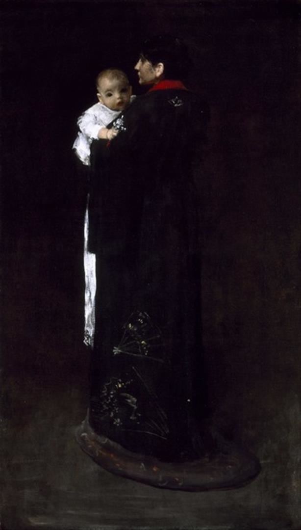 Artist: William Merritt Chase - Title: Mother and Child - Medium: Fine Art Giclee on Canvas - Image Size: Approximately 32 inches x 18 inches - Framed: Unframed on Unstretched Canvas - Biography: William Merritt Chase was an American painter, known as an exponent of Impressionism and as a teacher. He is also responsible for establishing the Chase School, which later would become Parsons School of Design.