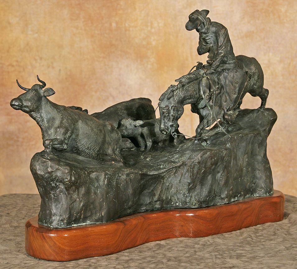 William Moyers (1916-2010) CA. Winter. 13" x 6 ½" x 19" bronze #17/30. Signature inscribed: © 1970 WM MOYERS. (est. $2,000-3,000). CONDITION REPORTS: www.auctioninsantafe.com/docs/cr2012.pdf