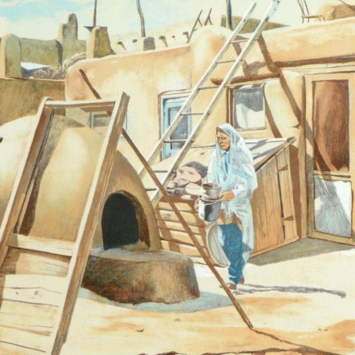"Adobe Man" is a limited edition serigraph on paper by William Nelson, numbered and hand signed by the artist! Measures approx. 22" x 29" (with border); 18" x 24" (image). Reference #: 216124.