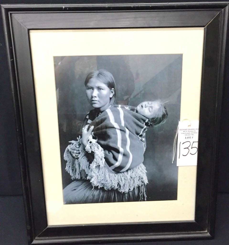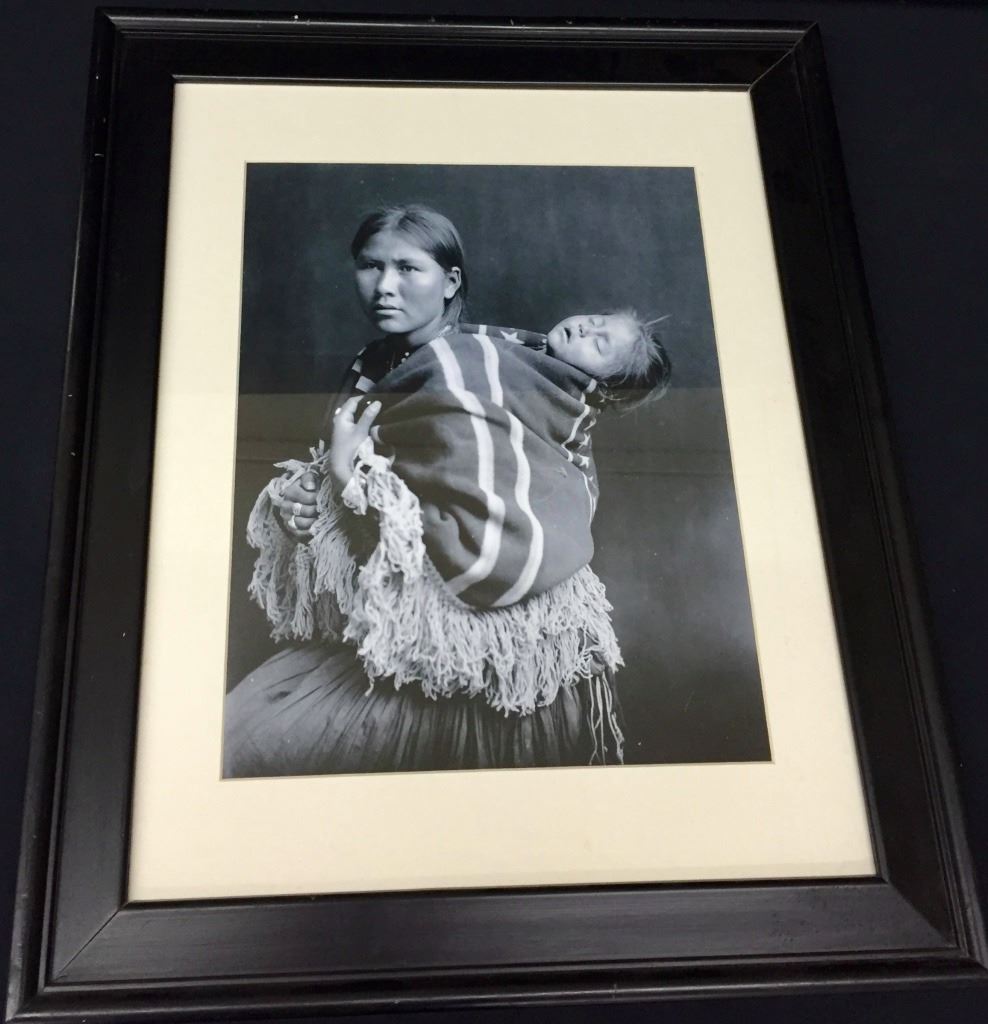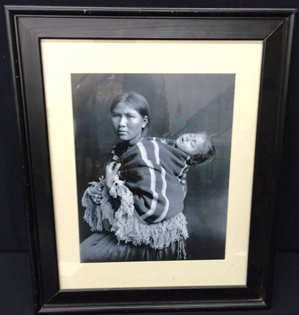 Titled “Navajo Mother and Child.” Original was taken in 1914 (this is a more contemporary development and on nice photo paper). Framed, under glass. Overall the frame measures 17.5" x 21.5”. Please look closely at pics - they are an important part of our description. Shipping: There will be a $10 handling / packaging fee for shipping this lot. The actual cost of postage will be added on top of that.
