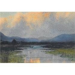 William Percy French (1854-1920) SUNSET OVER A WESTERN BOG signed with initials lower left; with a Humphreys of Streatham framing label on reverse watercolour 11 by 17cm., 4.5 by 6.75in.