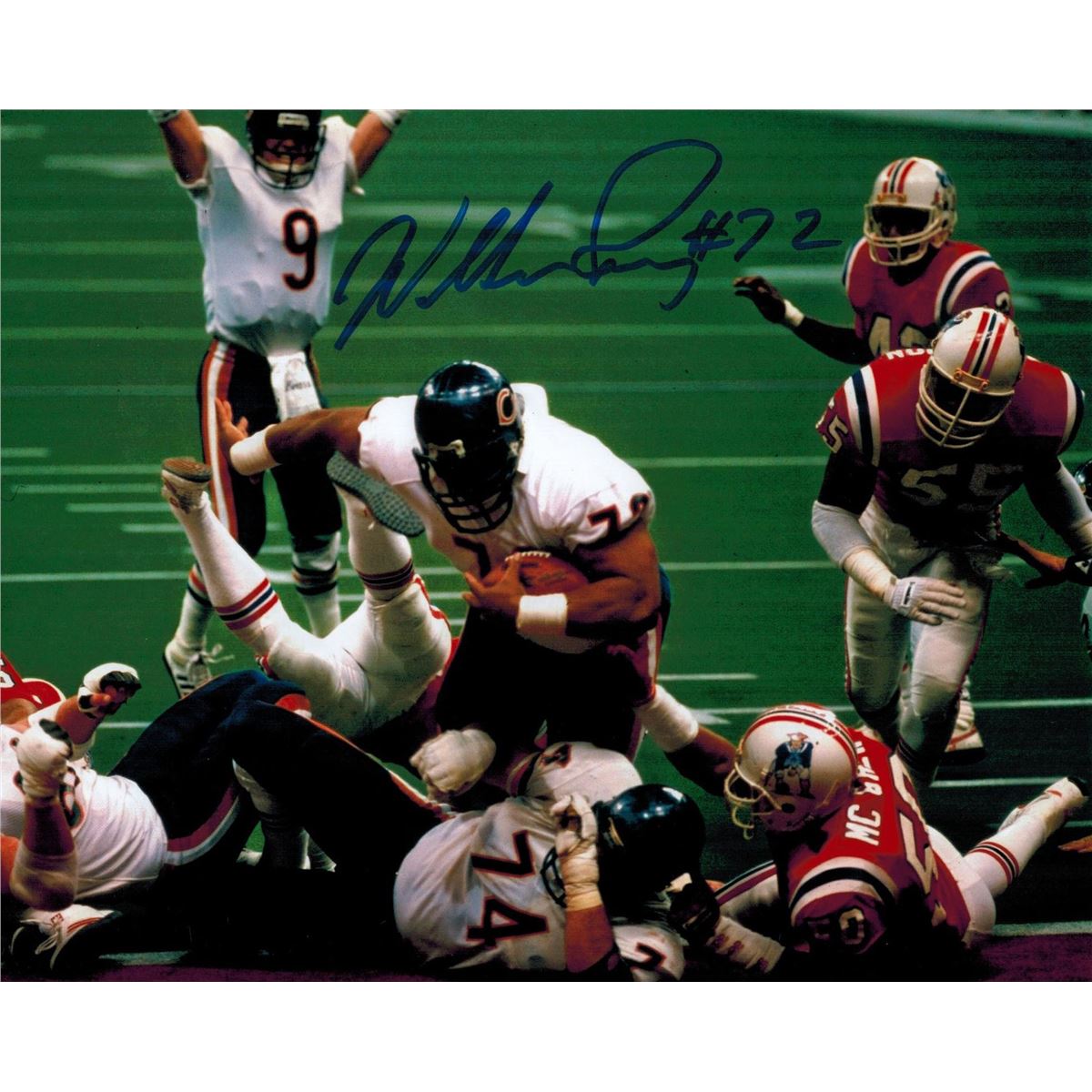 William Perry signed Bears action Super Bowl XX touchdown run 8x10 photo. Item comes with a Schwartz Sports Memorabilia tamper-proof numbered hologram and Certificate of Authenticity which can be verified online.