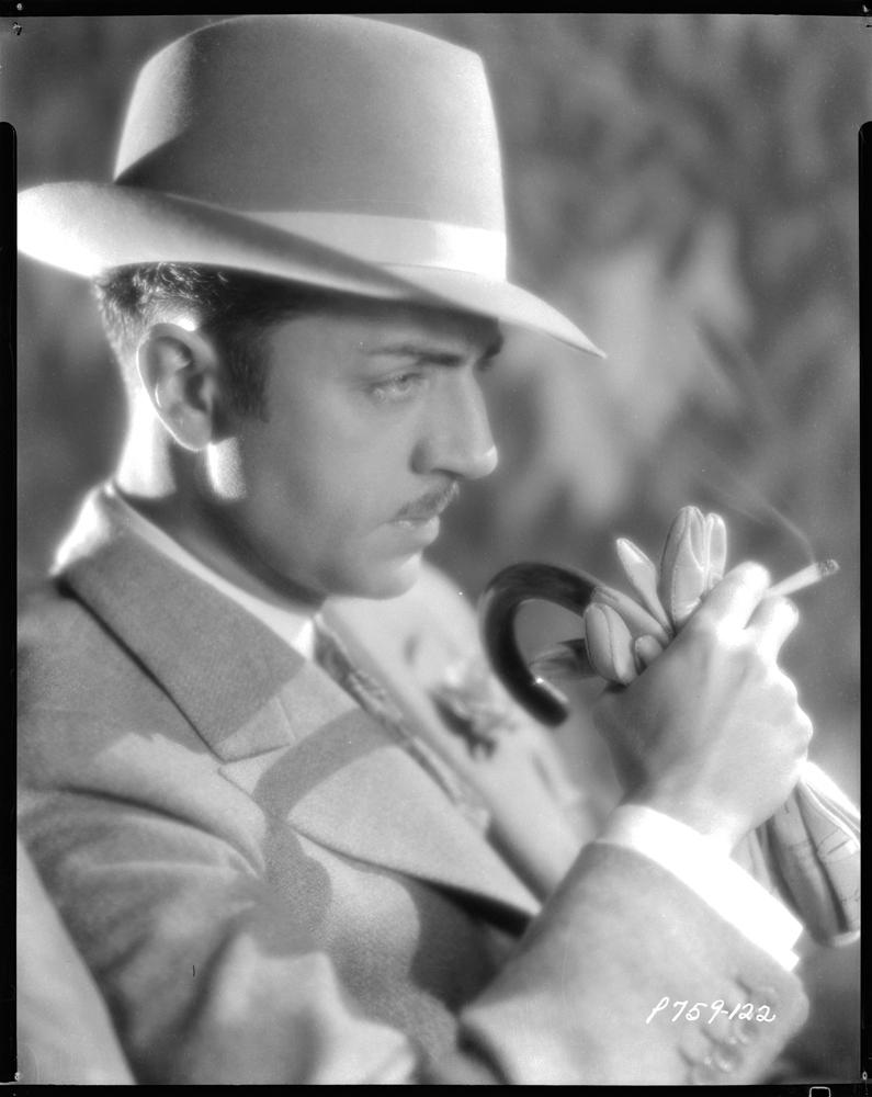 (Paramount, 1926) Two black-and-white 8 x 10 in. camera negatives on nitrate film of William Powell from The Runaway by Eugene Robert Richee; with P759-107 and P759-122 in India ink and retouching. Very fine; with mounting hole at the corner tips.