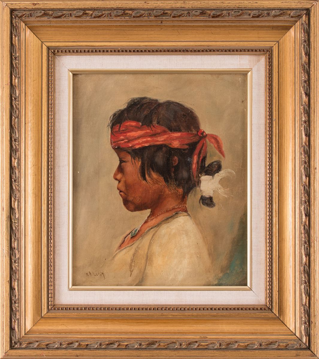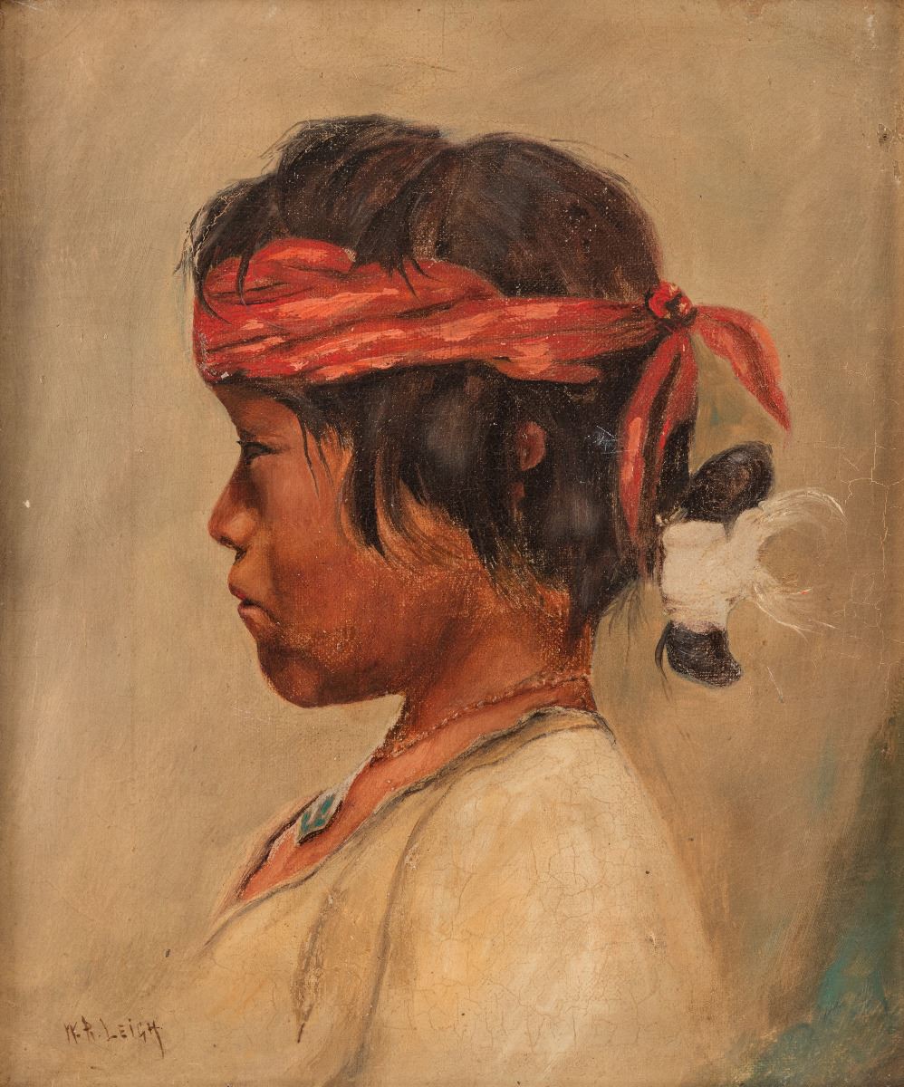 William R. Leigh (1866-1955). Navajo Boy. 12" x 10" oil on canvas. Signed lower left.