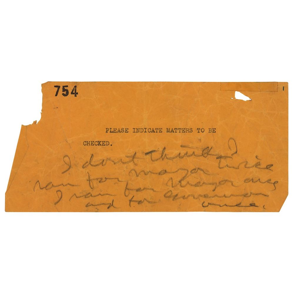 The notes on the 754 sheet, with typed caption, Please indicate matters to be checked, read as follows: I don't think I ran for mayor twice. I ran for mayor once and for governor once. Hearst did indeed run for Mayor of New York City twice; in 1905 and 1909. He ran for Governor of New York in 1906.
