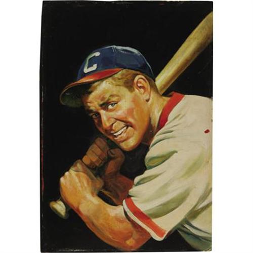 <B>William Reusswig (attributed) - Baseball Batter Painting Original Art (undated).</B></I> This painting of a baseball batter almost certainly graced the cover of a sports pulp, perhaps a title such as <B>Baseball Stories</B></I>, <B>Complete Sports</B></I>, or <B>Ten Story Sports</B></I>. The work is painted in a colorful manner with bold brushstrokes. The overall size of the painting measures 13" x 19". There are a few minor stains on the surface of the painting, but overall the art is in Very Good condition. This will make a great wall piece for a baseball fan. <BR><BR><b>Shipping:</b> Flat Material, Small (<a target="_blank" href="http://www.heritageauctions.com/common/shipping.php">view shipping information</a>)