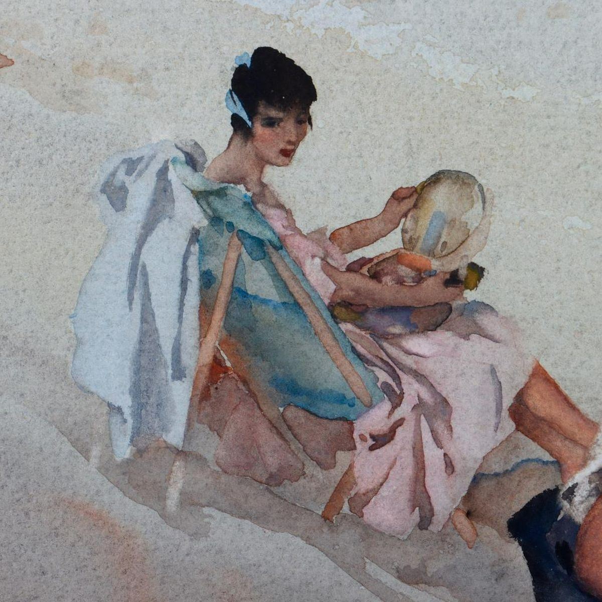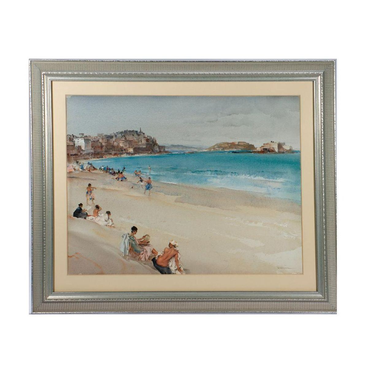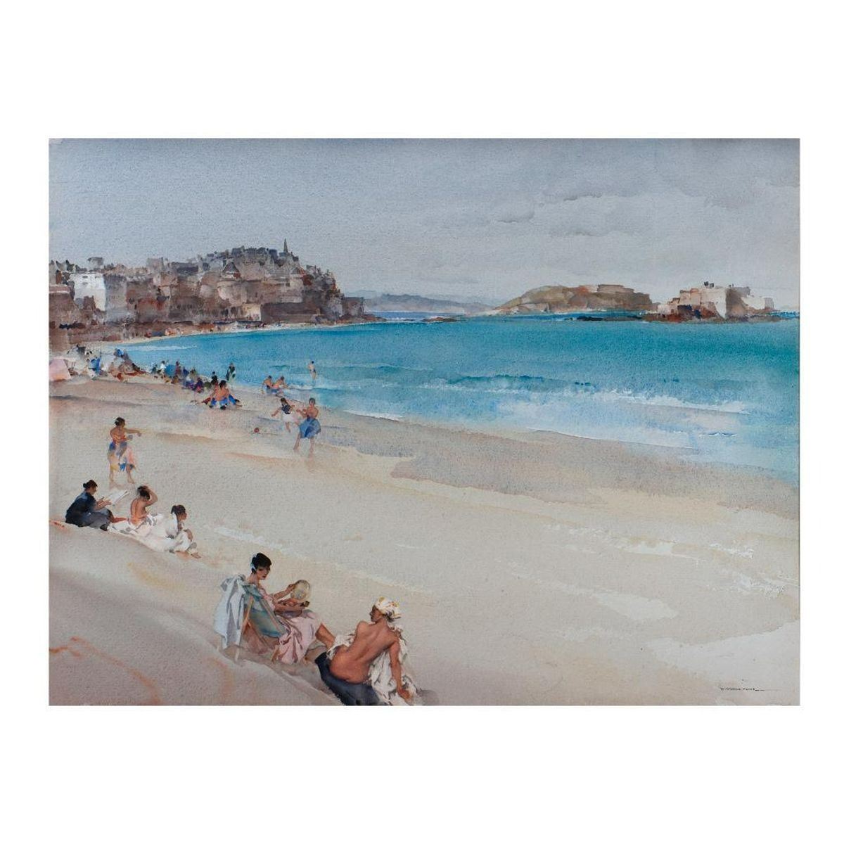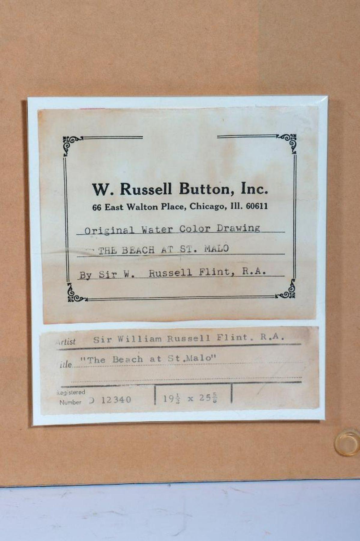 Artist: William Russell (Sir William) Flint (1880 - 1969) Title: The Beach At St. Malo Size: (Sight) 19 1/4" x 25 3/4" Year Created: Signature: Signed Lower right Medium/Ground: Watercolor on paper