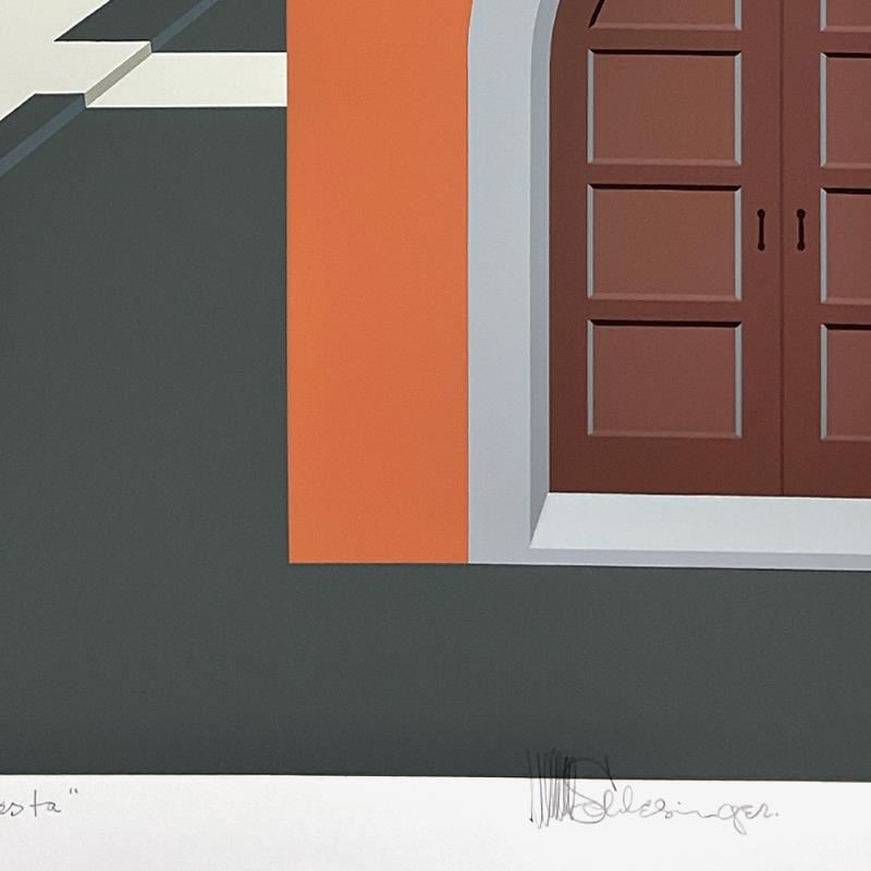 "La Siesta" is a limited edition serigraph on paper by William Schlesinger (1915-2011), HC numbered XIII/XX and hand signed by the artist. Includes Letter of Authenticity. Measures approx. 29" x 28" (border), 23" x 23" (image). Please note: There is some