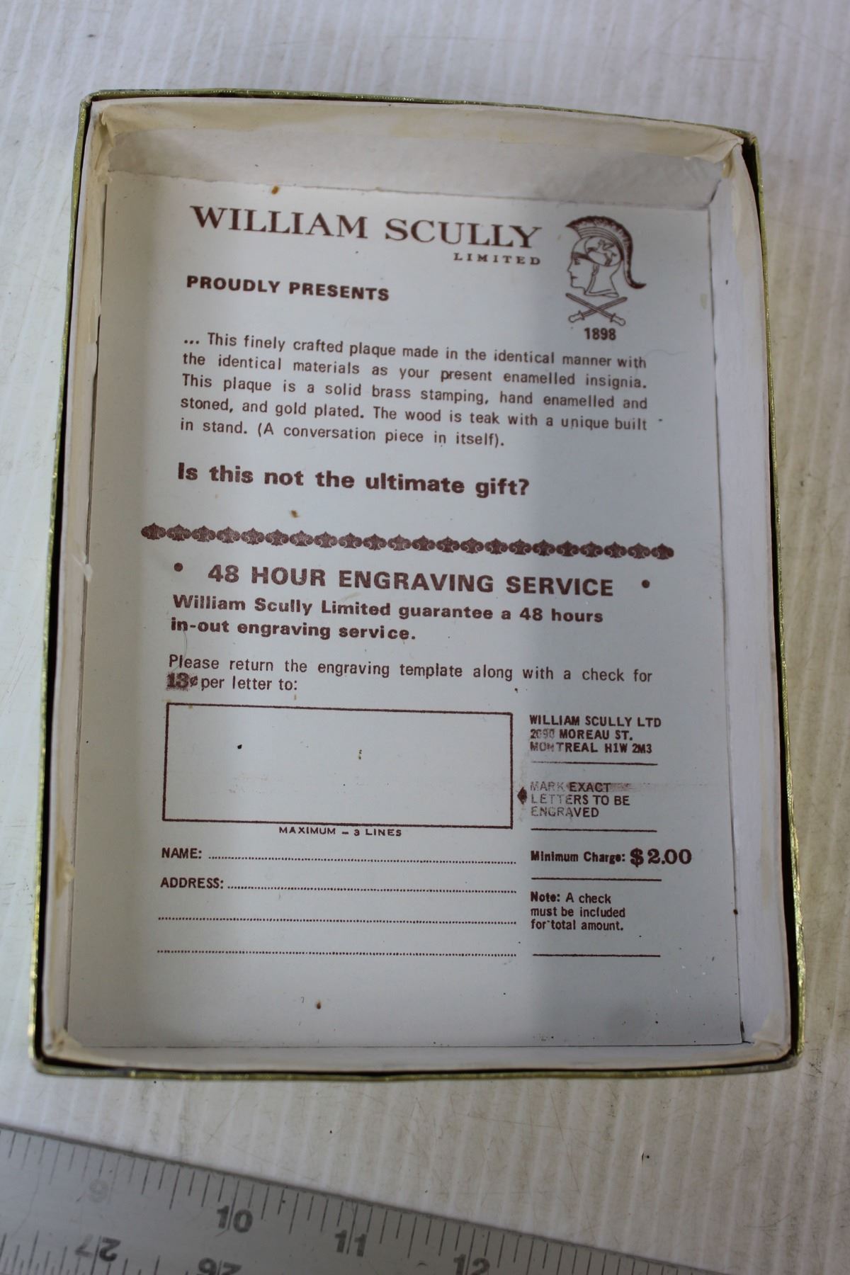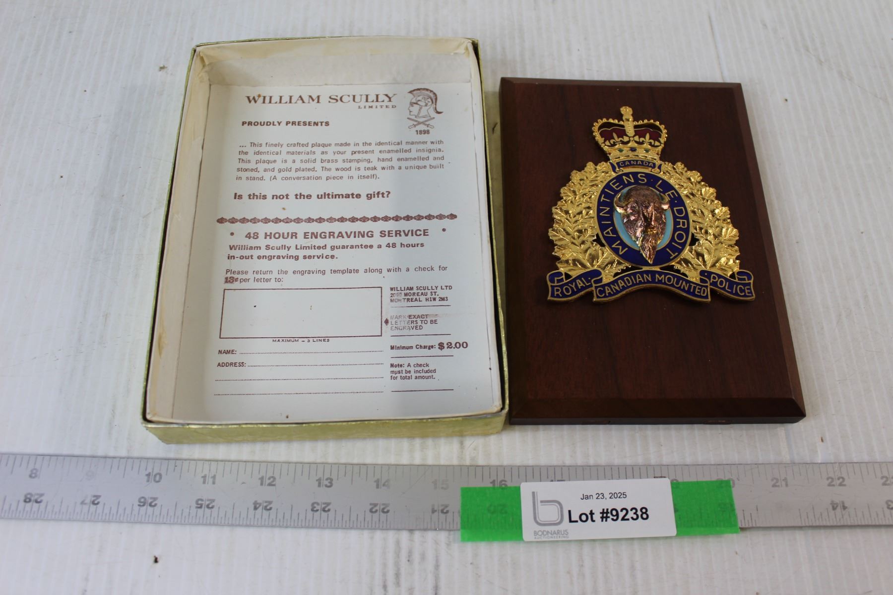 William Scully RCMP Plaque - 5 1/4" x 7 1/2"