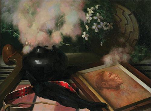 William Sharer (b. 1934). Still Life with Native American Objects. 18" x 24" oil on canvas. Signed lower right. (est $2,000-3,000)