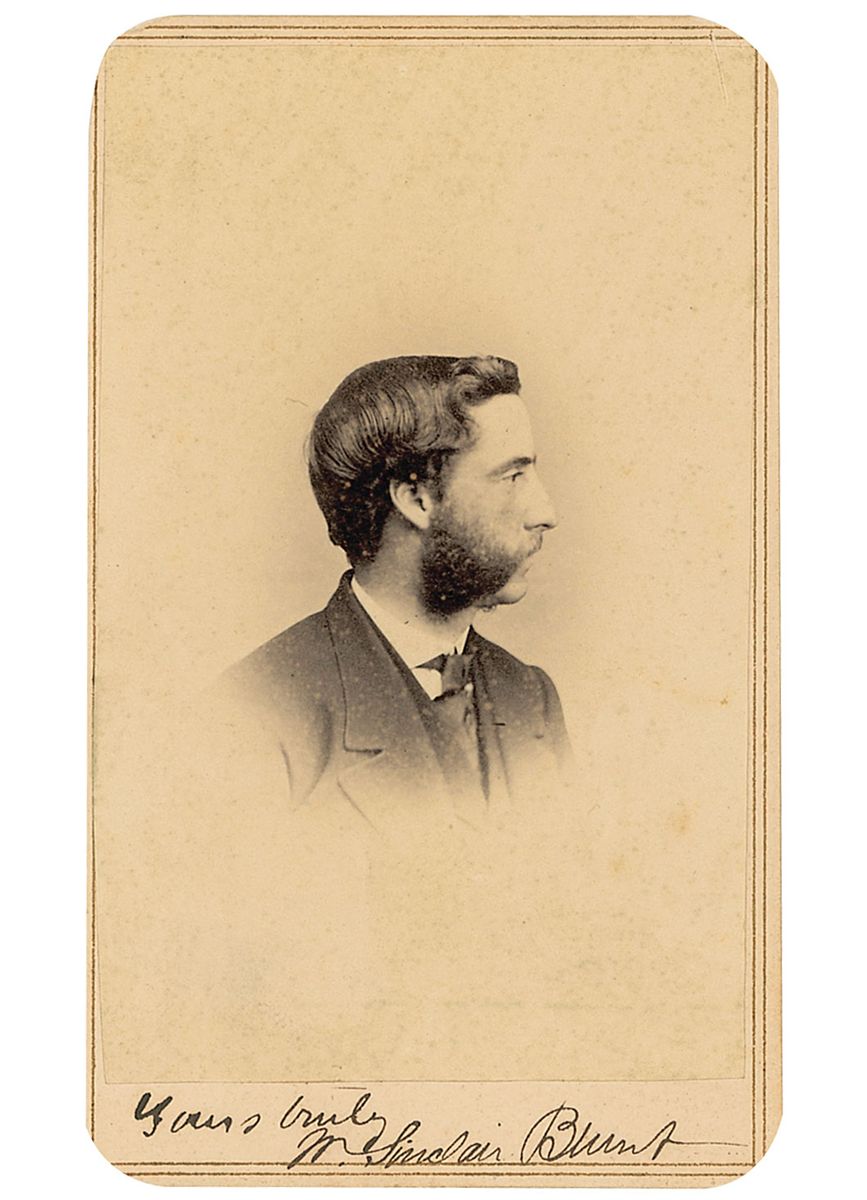Union naval officer who served on board the Morning Light. Original 2.25 x 4 carte-de-visite photo by Bradley and Rulofson of San Francisco, signed in black ink in the lower border, “Yours truly, W. Sinclair Blunt.” In fine condition, with lightly rounded corners.