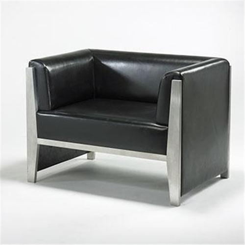 William Sofield<BR>prototype lounge chair for Yves Saint Laurent <BR>Studio Sofield<BR>USA, 2000<BR>stainless steel, vinyl<BR>42 w x 29 d x 30.5 h inches<BR><BR>Condition of the item is not included in this description. Condition reports are available from Wright upon request. Wright strongly recommends that you review a condition report for each item on which you plan to bid.