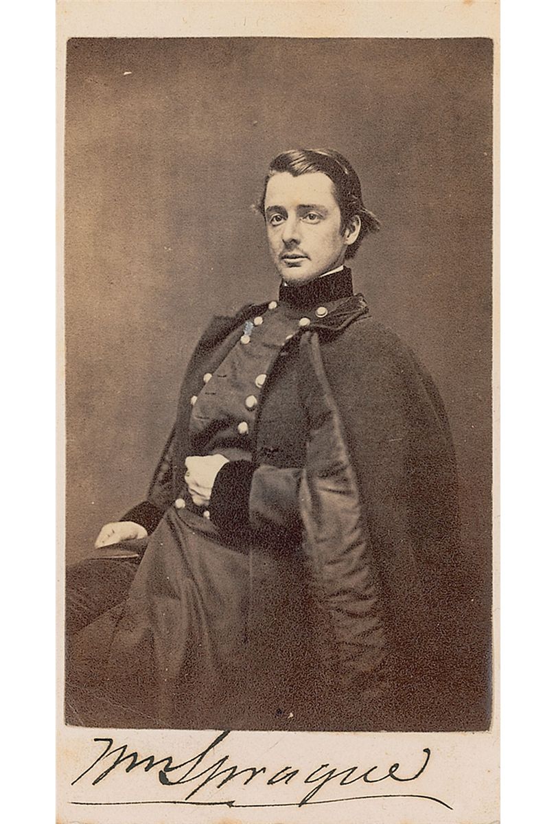 Participant in the First Battle of Bull Run who later served as governor of Rhode Island (1830–1915). Original 2.25 x 4.25 carte-de-visite portrait of Sprague in uniform by Allen & Horton of Boston, signed in the lower border in black ink, “Wm. Sprague.” In fine condition.