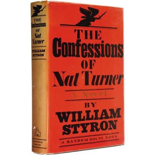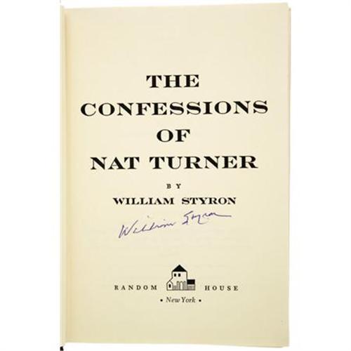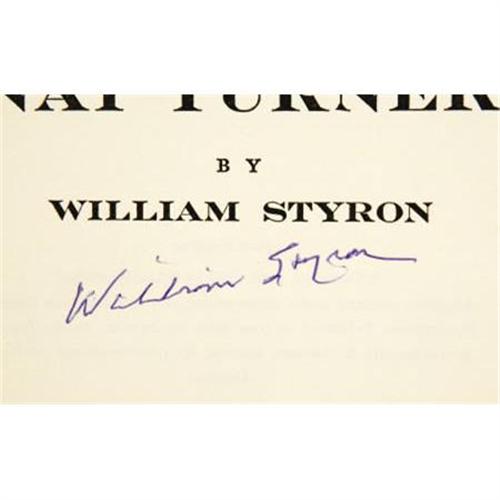 <B>William Styron: Signed First Printing of <I>The Confessions of Nat Turner</B></I></B></I> (New York: Random House, 1967), first printing, 428 pages, black cloth with gilt and orange lettering on the spine, 8vo (6" x 8.5"), dust jacket. Signed "<I>William Styron</B></I>" on the title page. Book is in about fine condition. The dust jacket shows some sunning to the spine and minimal shelf wear, else fine.<BR><BR><b>Shipping:</b> Books & Catalogs (<a target="_blank" href="http://www.heritageauctions.com/common/shipping.php">view shipping information</a>)