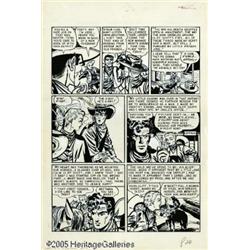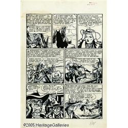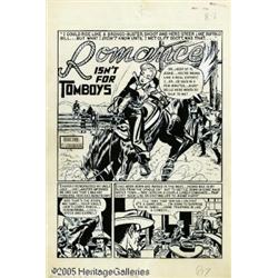 <B>William T. Johnson - Saddle Romances #10 Complete 6-page Story, "Romance Isn't for Tomboys" Original Art (EC Comics, 1950).</B></I> She could ride like a bronco-buster, shoot and herd steer like Buffalo Bill, but there was another side to Jeanie Hart! Behind that woman of steel who breaks hosses lies a warm heart, burstin' with love for ranch foreman Cliff Scott, as lithe and powerful as a man can be! A tale of traildust and cantankerous love, as a tomboy fades into a pretty gal by Walter T. Johnson. The pages measure 14.75" x 22" with a 13" x 18" image area. Some aging apparent and some word balloon revision paste-ups are here, otherwise these pages average in Very Good condition. Corral this torrid tale of love on Cobra Ranch - bid today! 6 Original Art