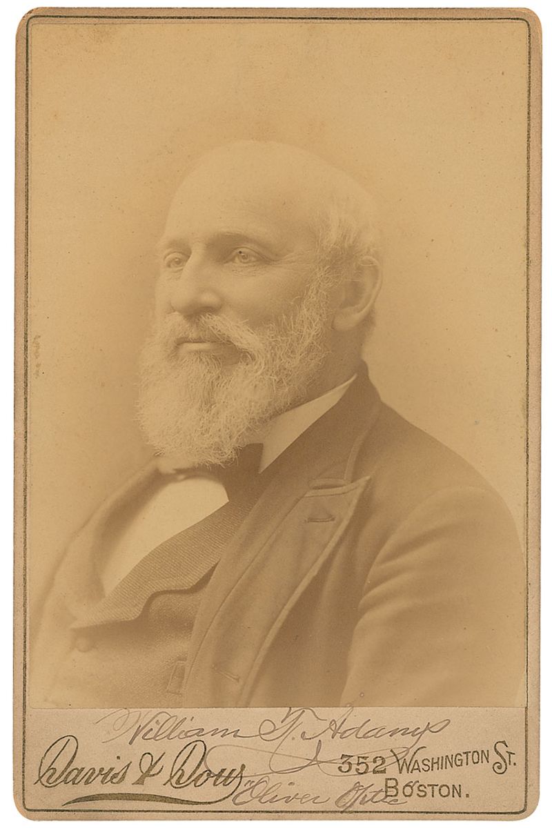 Author who wrote under the pseudonym Oliver Optic (1822–1897), he primarily wrote books for children. Original 4.25 x 6.5 cabinet photo by Davis & Dow of Boston, signed in the lower border in black ink, “William T. Adams, ‘Oliver Optic.’” In fine condition, with overall toning.